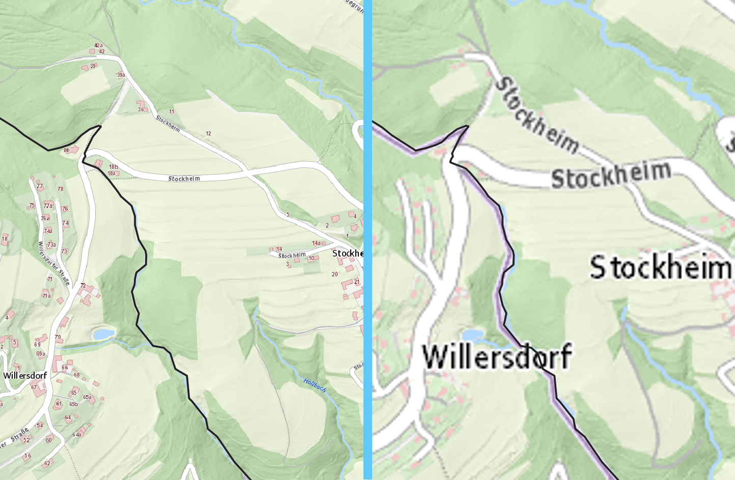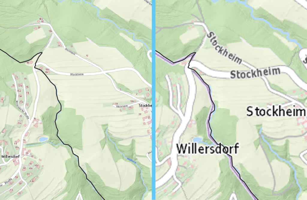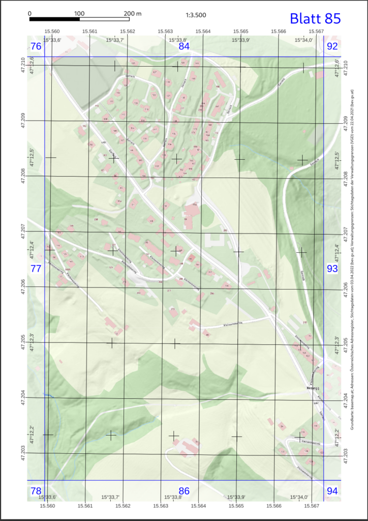 • Projektion in EPSG:31256 (ETRS89, passend zur basemap und den Adressen in meinem Heimatort)