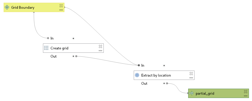 Da das erzeugte Grid deckt einen rechteckigen Bereich um die Gemeinde ab, nicht alle erzeugten Felder liegen aber auch innerhalb der Gemeinde. Das kann man manuell korrigieren, oder mit “Extract by location” das erzeugte Gitter mit den Gemeindegrenzen via “intersect” verschneiden.